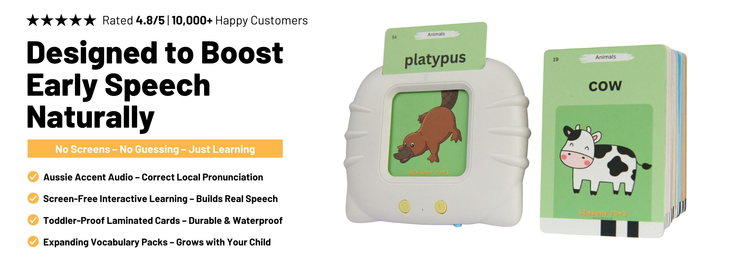AussieMate supports early speech with clear Australian pronunciation and familiar everyday words, encouraging kids to listen, repeat, and speak through hands-on play.