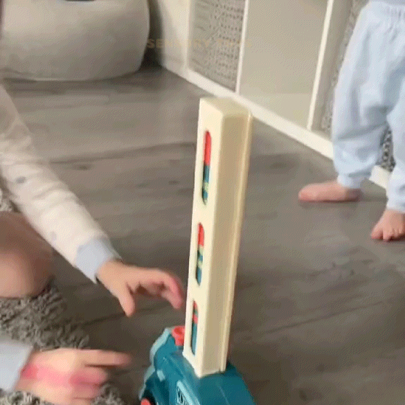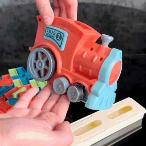 The Domino Train™ lays down colourful dominoes as it moves, making setup fun and easy.
