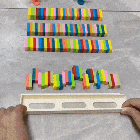 Placing and lining up dominoes encourages hand-eye coordination and precision.