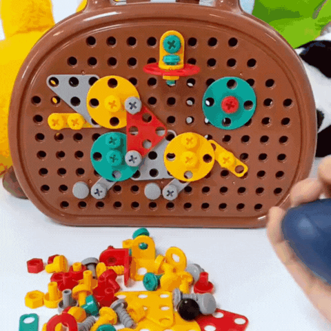 The Tiny Builders Toolbox helps improve hand-eye coordination, problem-solving skills, and builds confidence in DIY abilities.